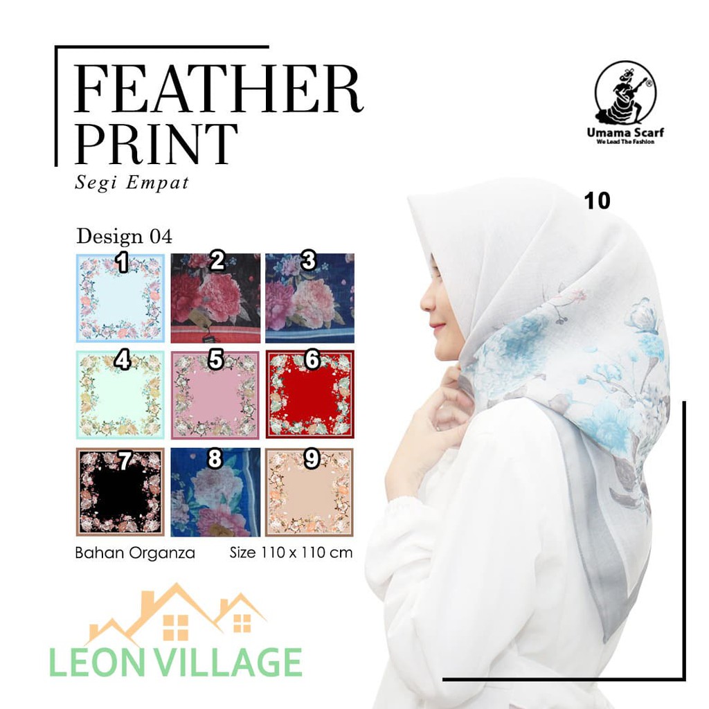 Penawaran MurahKerudung FEATHER PRINT A10 UMAMA Hijab Jilbab Organza Segi Empat Motif ayo segera diamankan