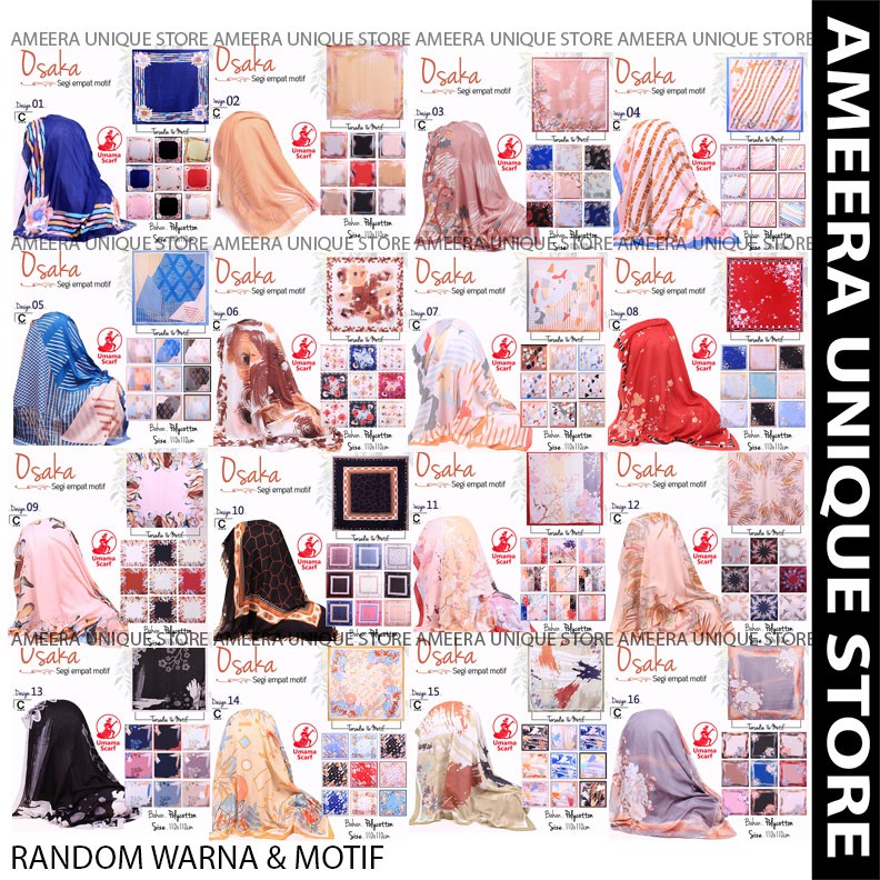 Promo Menarik OSAKA Umama Jilbab POLYCOTTON Hijab Kerudung Scarf Segi Empat SegiEmpat Printed Motif Random sayang jika tidak diambil